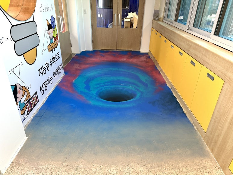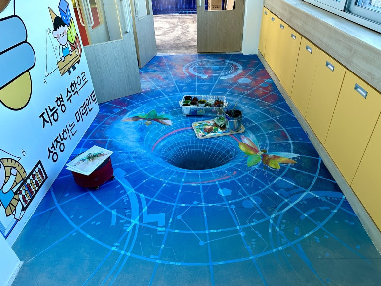 이번 시간에는 예산중앙초등학교 과학체험실 앞 복도에 미래로 가는 월홈 바닥 트릭아트 제작기를 보여 드리겠습니다